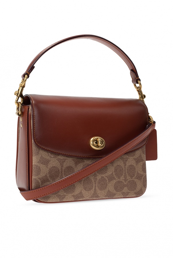 Brown and beige ‘Cassie’ shoulder bag from Coach. Crafted from leather and the brand’s signature canvas, this design fastens with a decorative closure in gold-tone and is enriched with a printed logo pattern, gold-tone metal hardware and a removable logo-embossed tag made of leather. It is complete with a back slip pocket, half-round handle, detachable and adjustable shoulder strap as well as three internal compartments with one zip pocket.