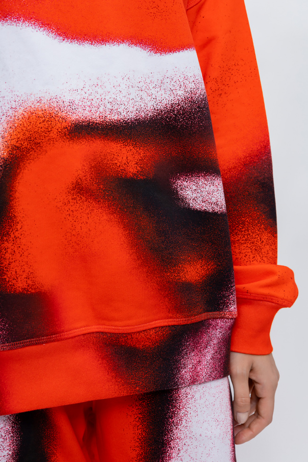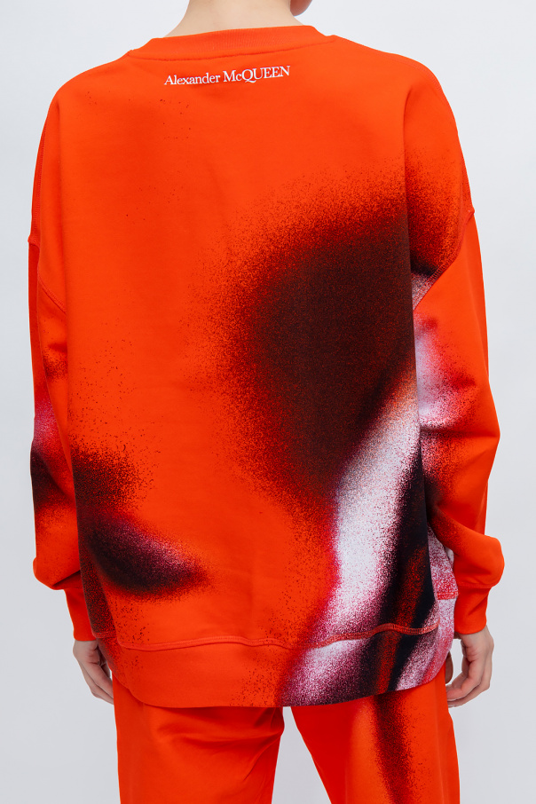 Red, white and black crewneck sweatshirt from Alexander McQueen. Crafted from cotton jersey, this style features a regular fit and ribbed trims on the collar, bottom hem and cuffs.