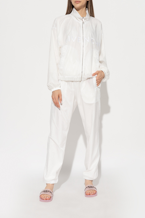 Pink, transpartent slides from Givenchy. Made of rubbber, this pair is decorated with a raised logo in black.