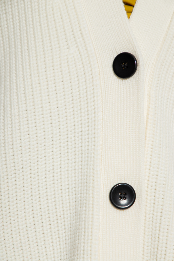 Cream loose-fitting cardigan from Proenza Schouler White Label. Crafted from wool, this long sleeve design fastens with buttons.