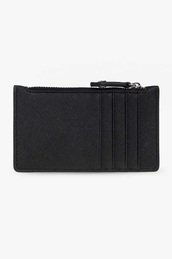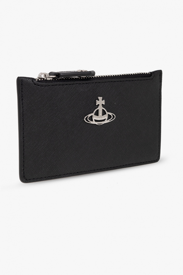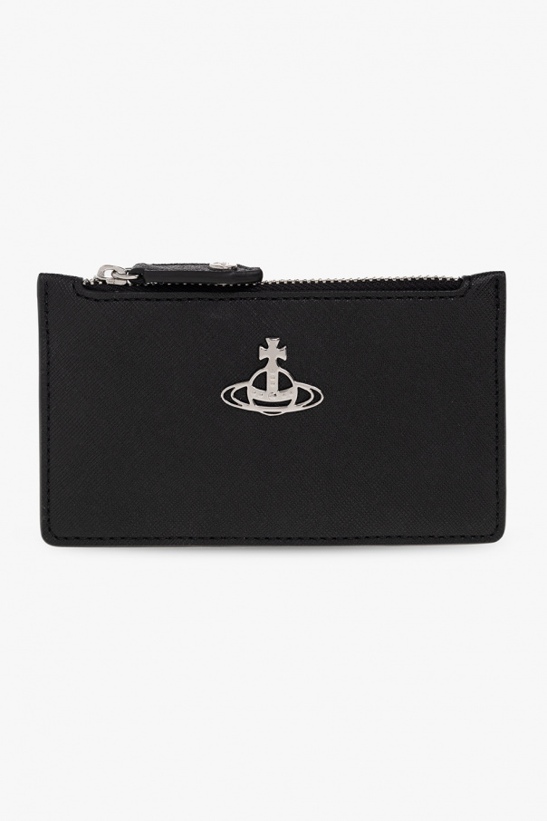 Black card case from Vivienne Westwood. Crafted in part from recycled material, this item features a zip pocket, a silver-tone logo on the front and four card slots at the back.