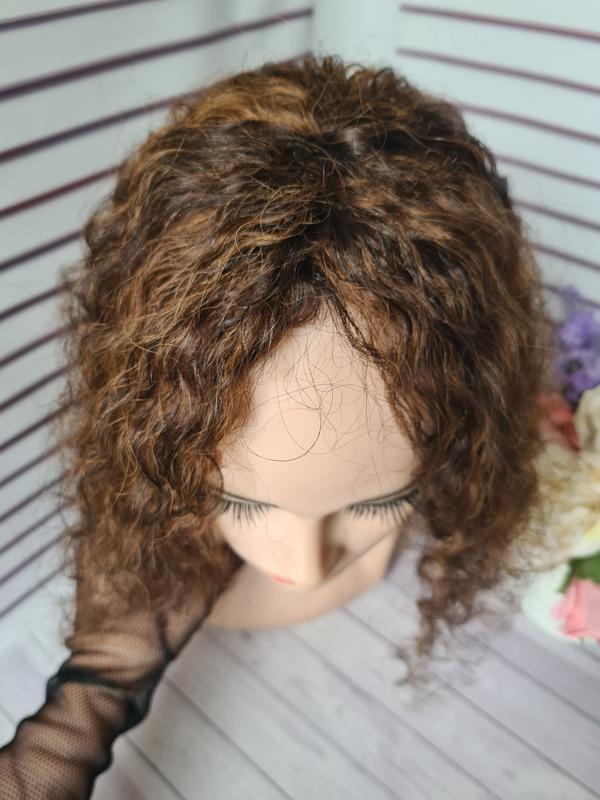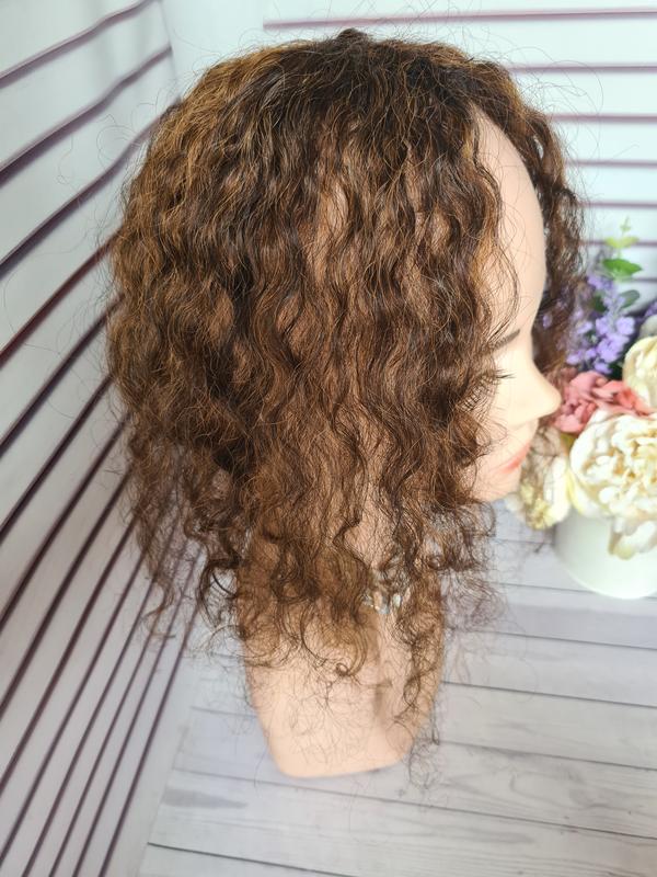 Накладка топпер на макушку из натуральных человеческих волос кудрявые афро.Волос мягкий тонкий как словянскмй очень легкий и с красивым окрасом натурального руссого цвета.Кто купит будет доволен покупкой так как такая накладочка смотрится очень естественно.Накладки из натуральных волос используются для людей с малым количеством волос.