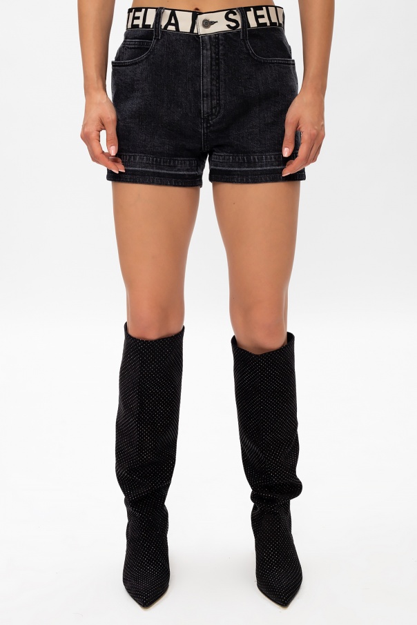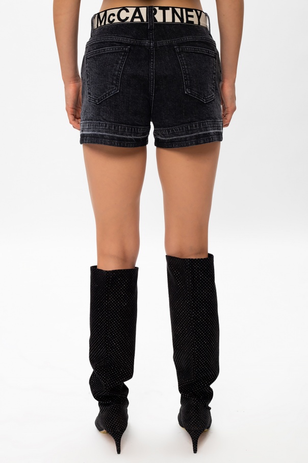 Dark grey denim shorts from Stella McCartney. Fastened with a zip and button, this item features a black and beige logo embroidery, two front pockets and two back pockets. Produced in an environmentally friendly way without the use of toxic chemicals and with up to 70% less water.