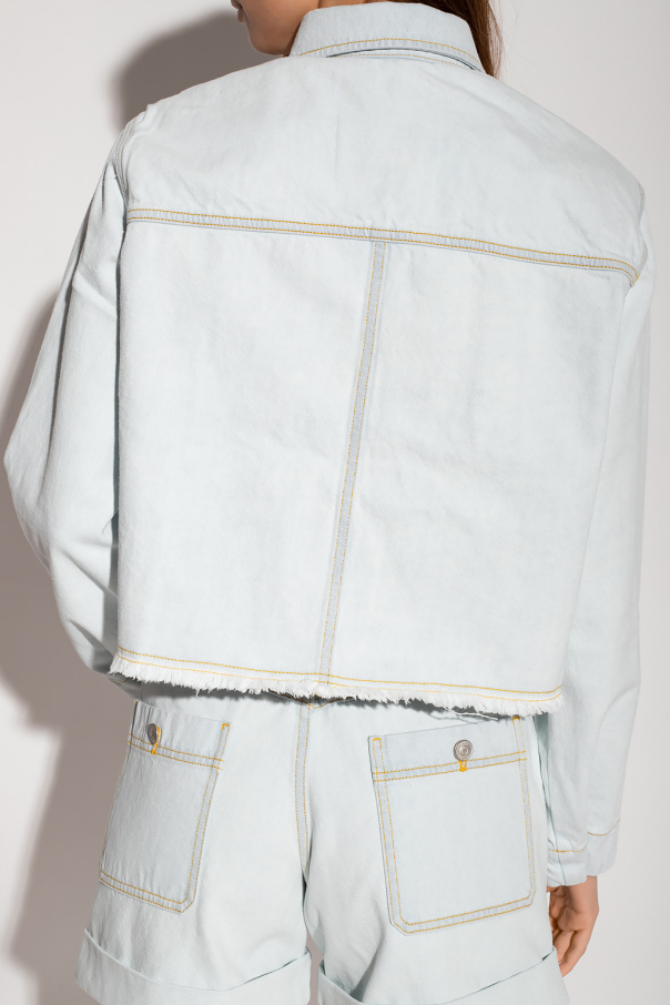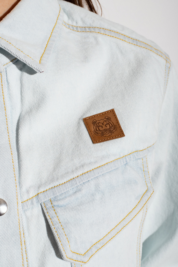 Light blue denim jacket from Kenzo. Fastened with snaps, this design features two flap pockets, the label’s signature tiger head patch, raw cut edges and long sleeves with snap-fastened cuffs.
