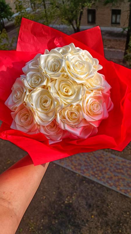 Троянди з атласних стрічок любого кольору.🥀❤️🔥 Чудовий подарунок який ніколи не зав'яне. Якщо не знаєте що подарувати даруйте мої букети, коханій, мамі, подрузі, колезі, вчителю.Всім підійде. Підійде на будь яке свято і не тільки.