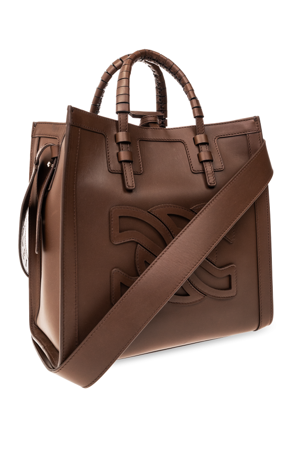 Dark brown ‘Beauriva’ shopper bag from Casadei. Crafted from calf leather, this design secures with a toggle fastener and features a logo patch on the front. It is complete with a detachable and adjustable shoulder strap, two handles with braided detailing, silver-tone metal hardware and one internal compartment with a zip pocket.