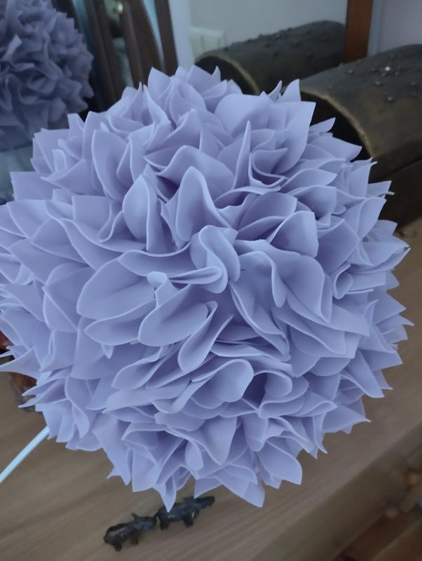 Абажур изделия имеет мягкую фактуру и окрашен в нежно- сиреневый цвет .