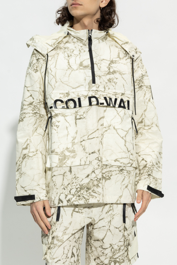 Cream, grey and green jacket from A-COLD-WALL*. Made of ripstop cotton, this design features a zip fastening, marble pattern, black logo print, detachable drawstring hood with snap fastenings, four pocket, drawstring hem and long sleeves with branded rubber tabs with velcro fastening.
