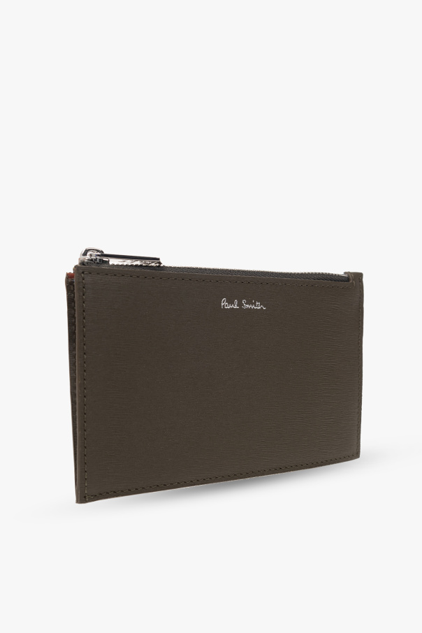 Multicolored card holder from Paul Smith. Made of leather, this item is decorated with a silver-tone logo print and features four card slots and a zip pocket.