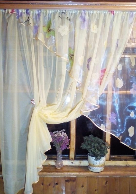 тесьме.Гардина изготовлена из шифона и органза