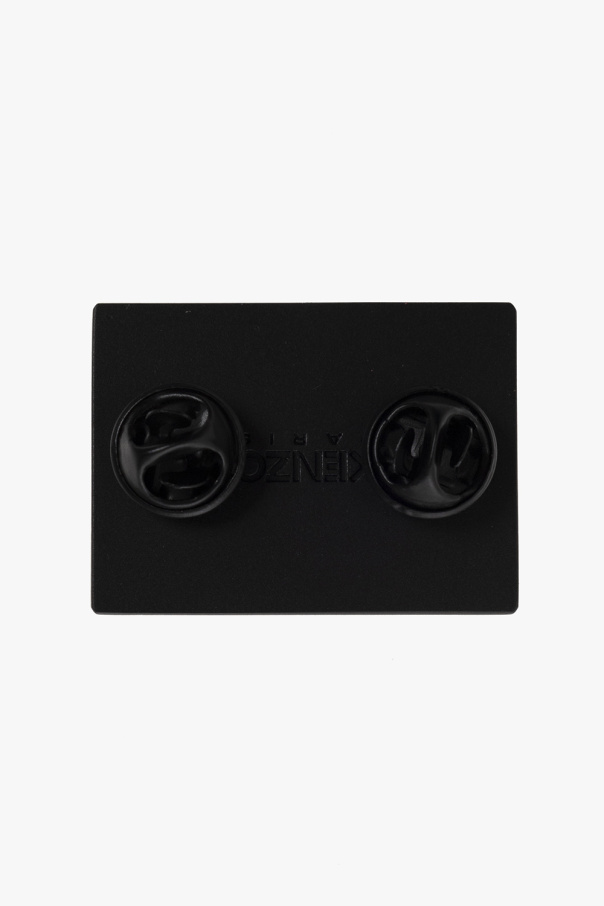 Set of three pins in grey, red and black & white from Kenzo. Made of zamac, they showcase the brand\'s logo and its signature ‘Boke Flower’ motif and an elephant head.
