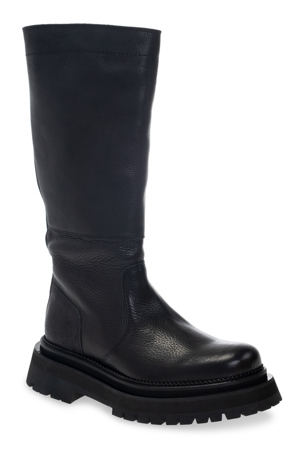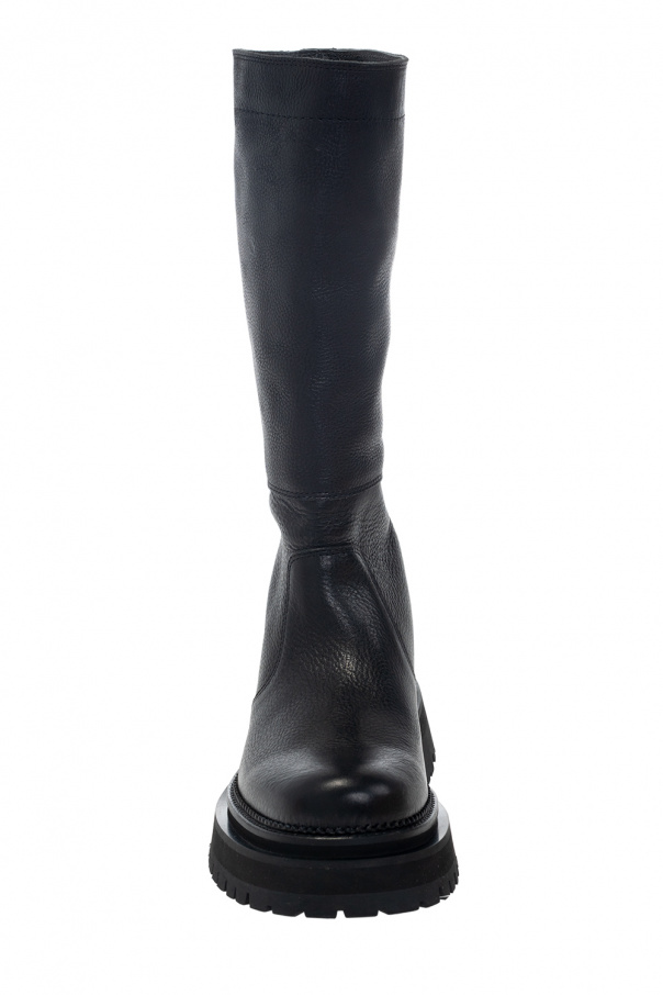 Black knee-high boots from Ami Alexandre Mattiussi. Crafted from textured leather, this model sits on a black rubber sole.
