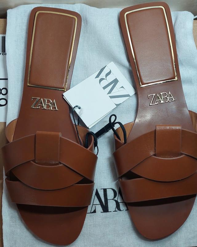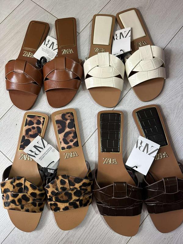Шкіряні жіночі шльопки іспанського бренду Zara.