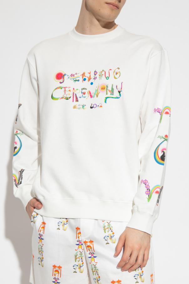 White crewneck sweatshirt from Opening Ceremony. Crafted from cotton jersey, this style features a colourful logo print and a ribbed collar, bottom hem and cuffs.
