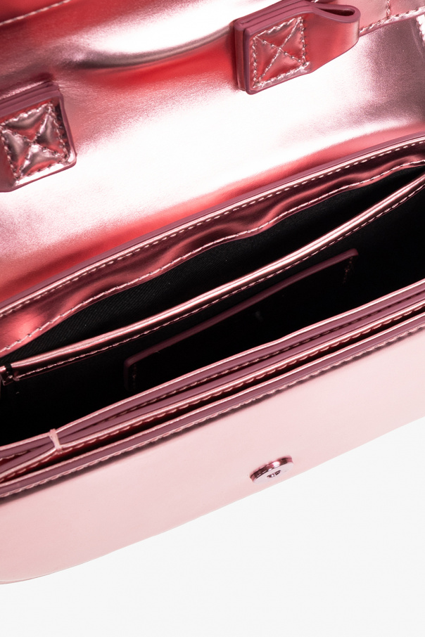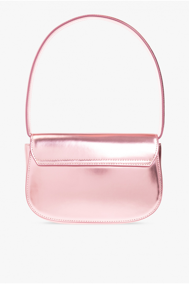 Light pink ‘1DR’ handbag from Diesel. Crafted from glossy cow leather with a mirror effect, this design secures with a magnetic snap and features a logo plaque on the flap, a half-round handle, a detachable and adjustable shoulder strap and a black-clad interior with one compartment and two slip pockets.