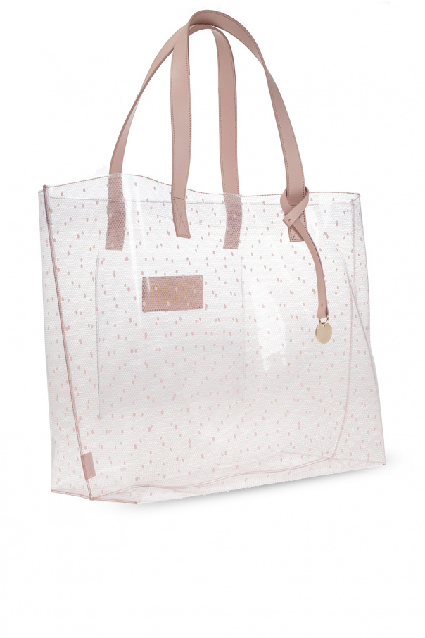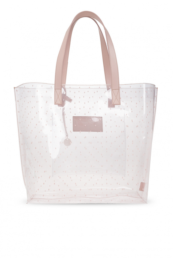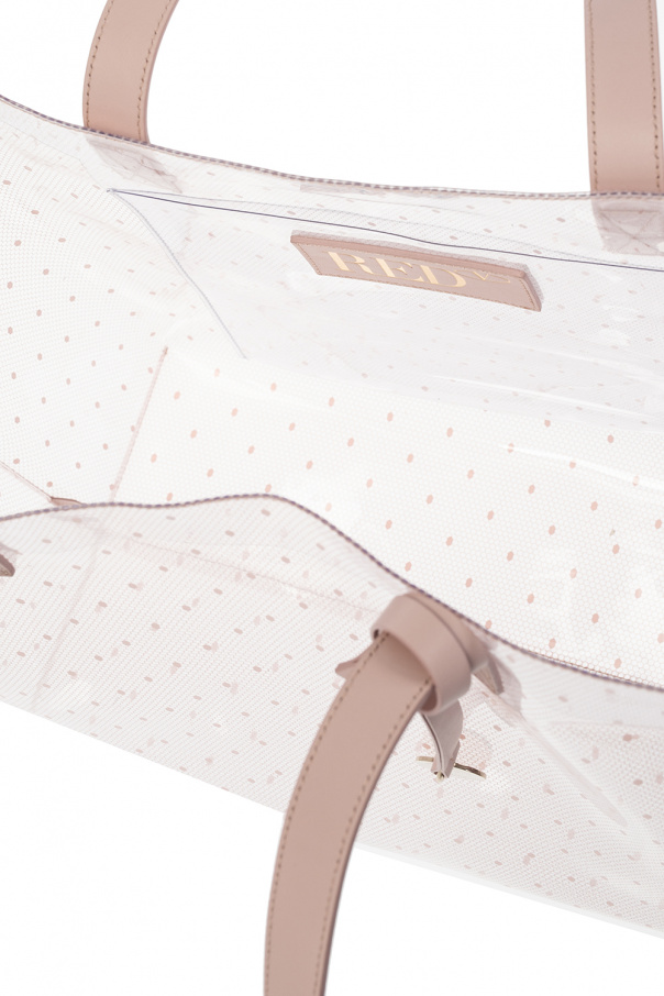 Transparent \'Joy2Go\' shopper bag from Red Valentino. Embellished with the brand\'s signature \'Point d\'Esprit\' print, this design features light pink leather trims, two half-round straps and one internal compartment with a slip pocket.