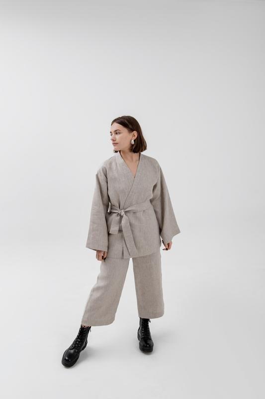 Костюм кимоно с кюлотами из плотного фактурного льна, свободного фасона женский