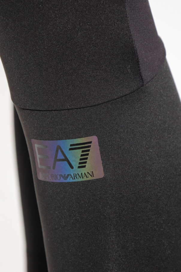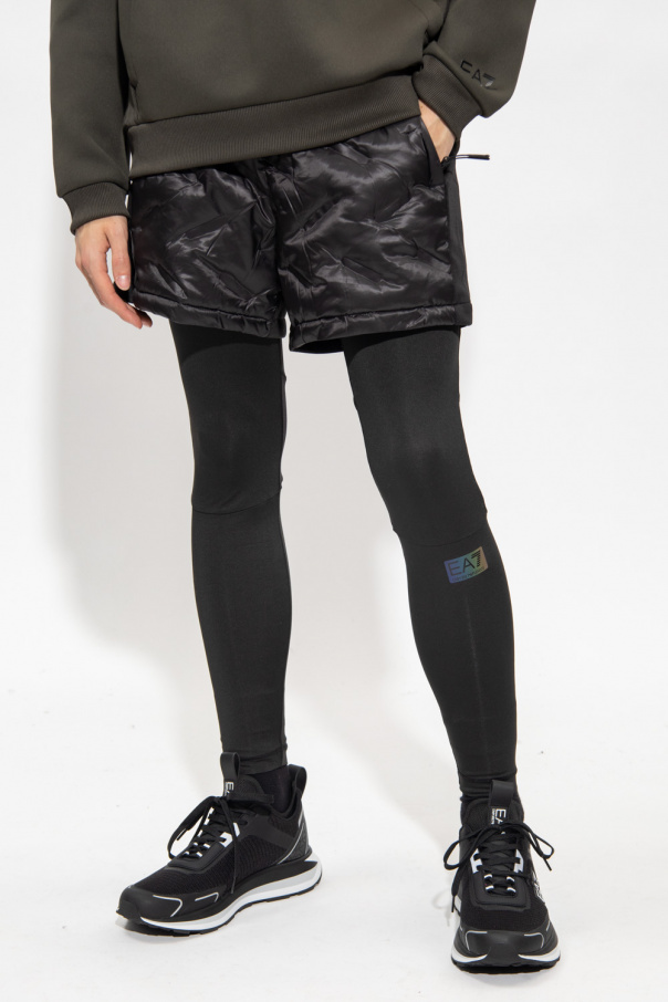Black training leggings with shorts from EA7 Emporio Armani. Crafted in contrasting fabric panels, this style features a drawstring waist, a logo print and two front zip pockets.