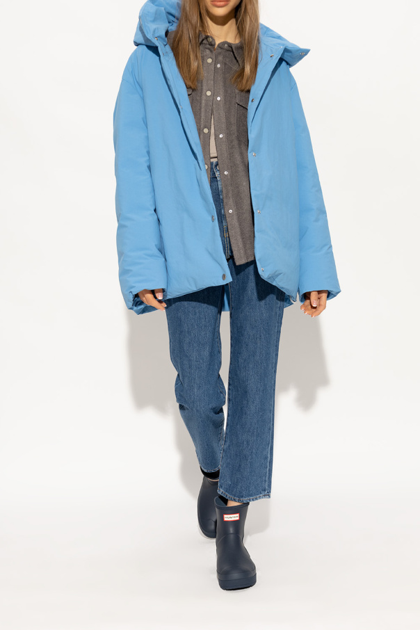 Navy ‘Play Short’ rain boots from Hunter. Handcrafted from vulcanized natural rubber with a matte finish, this pair features a logo detail, white, red and navy pull strap at the back and rubber outsole with the signature Hunter Original tread.