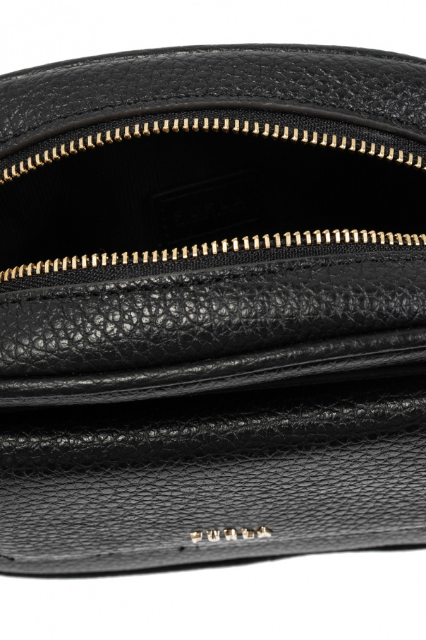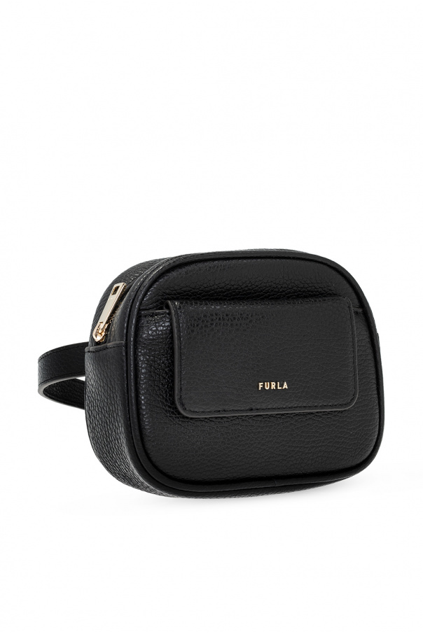 Black ‘Babylon’ belt bag from Furla. Made of leather, this design fastens via a zip and showcases gold-tone metal hardware – including a logo plaque, a logo print, an adjustable strap, a slip pocket accompanied by a removable card case on the front and one main internal compartment.