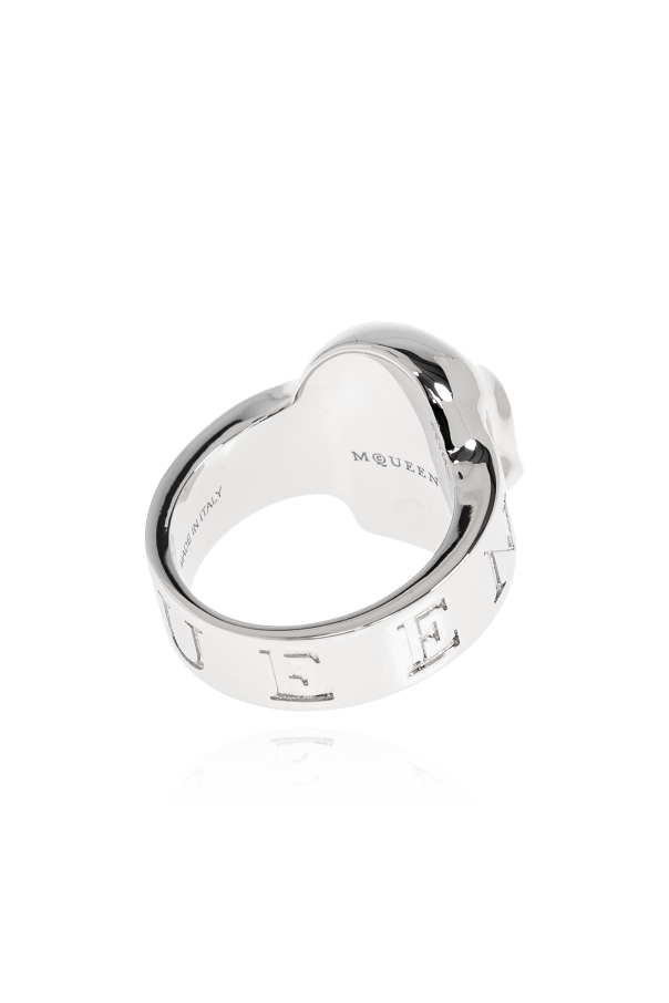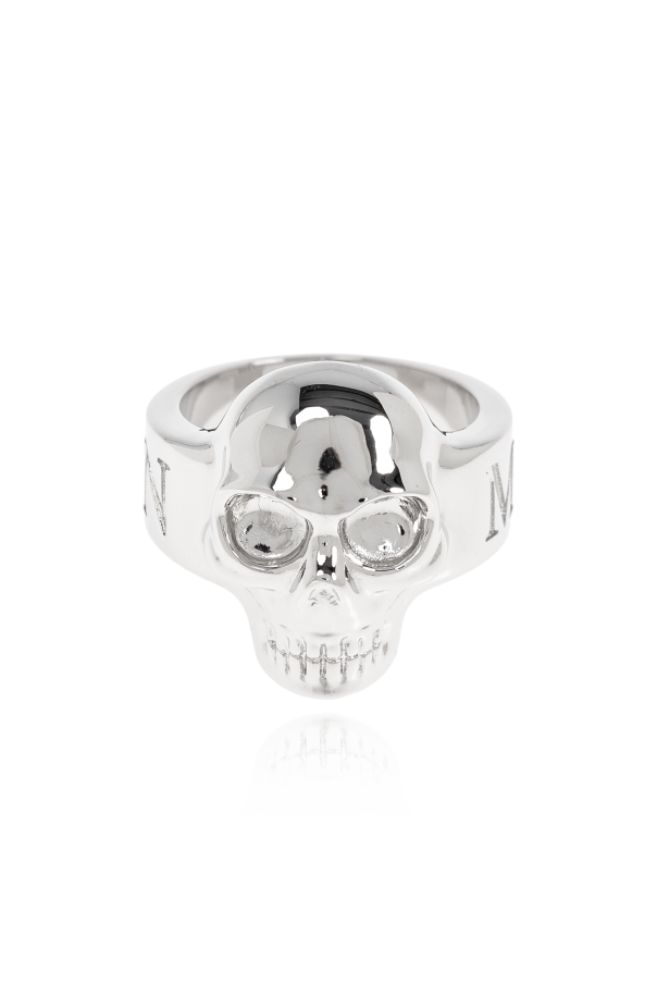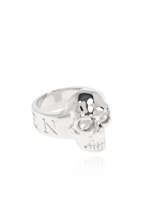 Introducing the Brass Ring by Alexander McQueen, a masterpiece that embodies both tradition and avant-garde innovation. This exquisite silver-toned ring features a distinctive skull motif, meticulously crafted in three dimensions with intricately defined details, including the eyes, nose, and teeth. Its robust construction exudes strength, while the engraved designer logo around the band\'s circumference adds a touch of exclusivity. The silver finish imparts an elegant and contemporary allure, seamlessly complementing formal attire. This ring is a testament to McQueen\'s philosophy of harmonizing contrasts, honoring history and art, and epitomizing modern British tailoring. Why Choose This Product? Exquisite Design with a detailed three-dimensional skull motif Exclusive Branding with an engraved designer logo Elegant Silver Finish that enhances its modern aesthetic Robust Construction ensuring durability and presence
