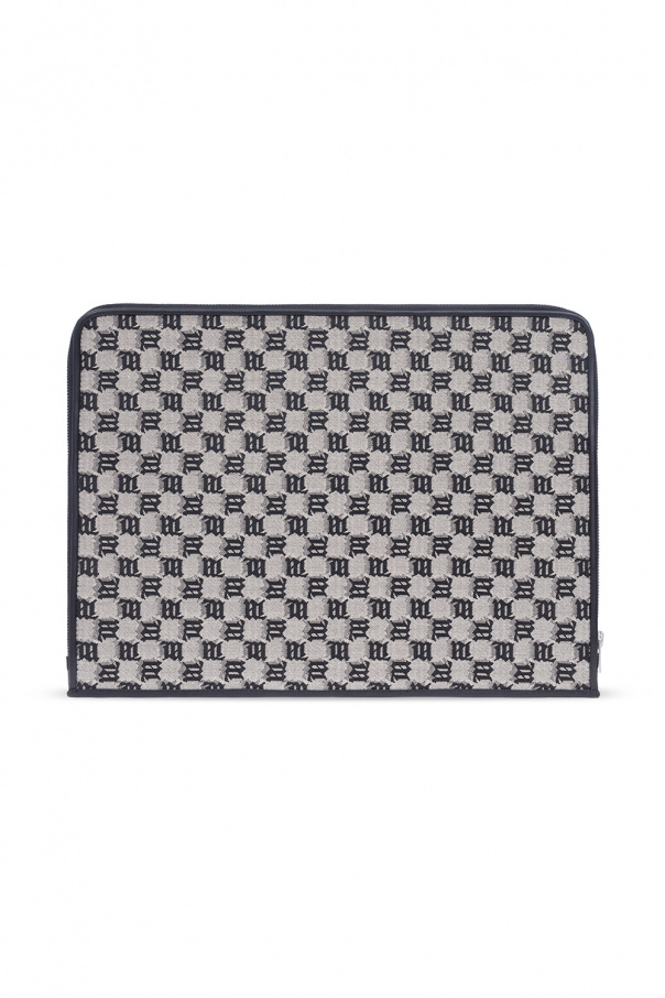 Beige and black handbag from MISBHV. Crafted from cotton and embellished with the brand's jacquard ‘M’ monogram theme, this design features a zip fastening, silver-tone metal hardware and one internal compartment with one slip pocket and three card slots.