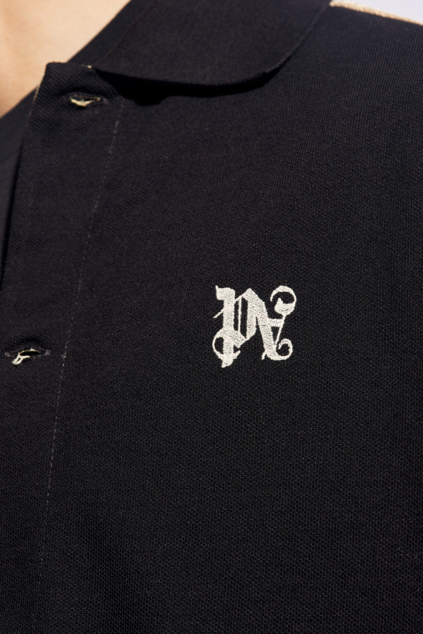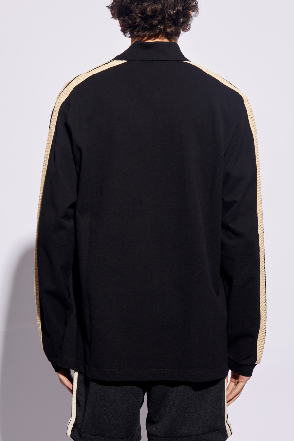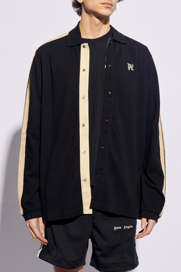 Black and cream shirt from Palm Angels. Made from cotton, this style showcases braided straps, front button fastenings and long sleeves with elasticated cuffs.