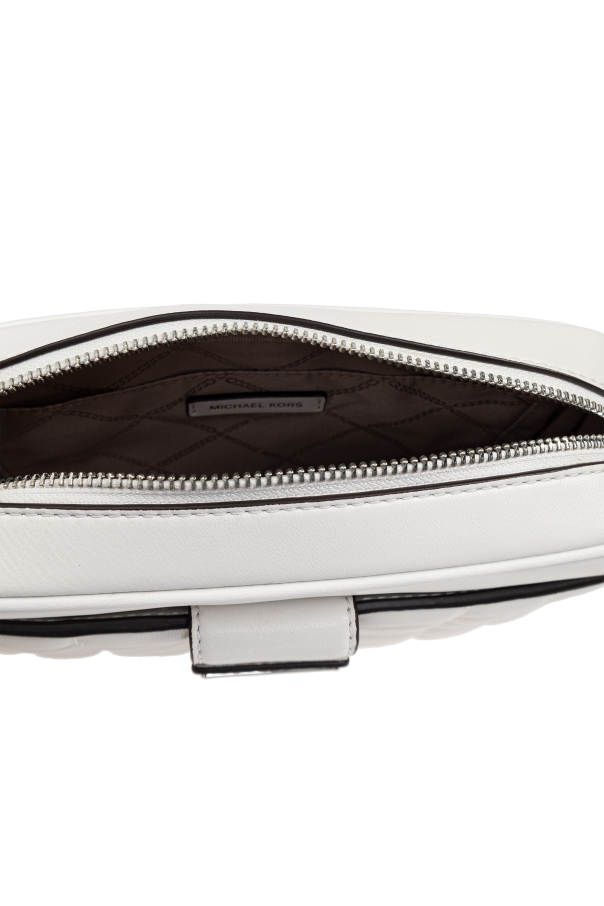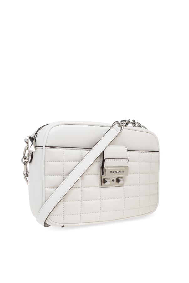 Introducing the `Tribeca` Shoulder Bag by Michael Michael Kors—a paragon of sophistication and practicality. Crafted with exquisite attention to detail, this bag features a 100% leather exterior, presenting a quilted pattern that exudes elegance through its textured square motifs. The rounded corners of its rectangular silhouette soften its design, lending a modern touch to this timeless accessory. The bag\'s allure is further enhanced by a silver-toned metal zipper on the front, serving both as a secure closure and a decorative element. Its thin, cohesive strap, made from the same premium leather, is adorned with silver-toned hardware, adding a touch of glamour. The strap\'s adjustability ensures a personalized fit, accommodating various preferences and styles. The interior, lined with 100% high-quality material, remains a mystery, yet its external craftsmanship hints at a luxurious design. It features a main compartment and a slip pocket, providing ample space for essentials. Displayed against a black ensemble in the photographs, the `Tribeca` bag showcases its versatility and functionality as a sublime addition to diverse fashion statements. Why Purchase the `Tribeca` Shoulder Bag? Elegance in Design: Quilted leather and silver-toned accents elevate your style. High-Quality Materials: Crafted from 100% leather with a durable internal lining for longevity. Functional Elegance: Features a secure zipper closure, a main compartment, and a slip pocket for organized storage. Versatile Style: Adjustable strap and sleek design complement any outfit, from casual to formal.