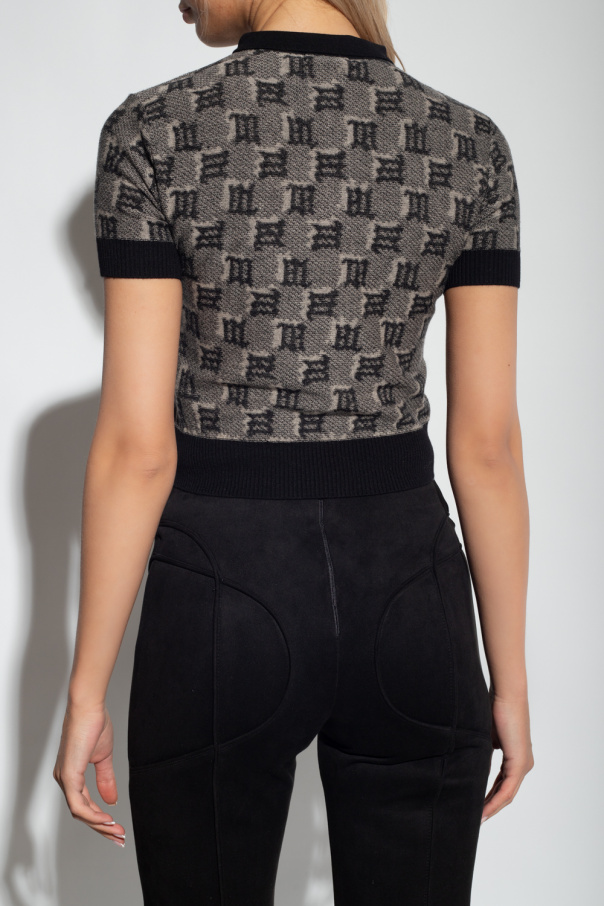 Cream and black top from MISBHV, the ‘1978-1982’ collection. Embellished with a monogram pattern, this style features button fastenings and an elasticated collar and short sleeves.