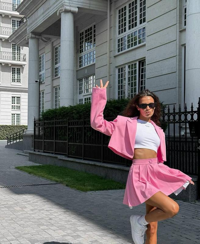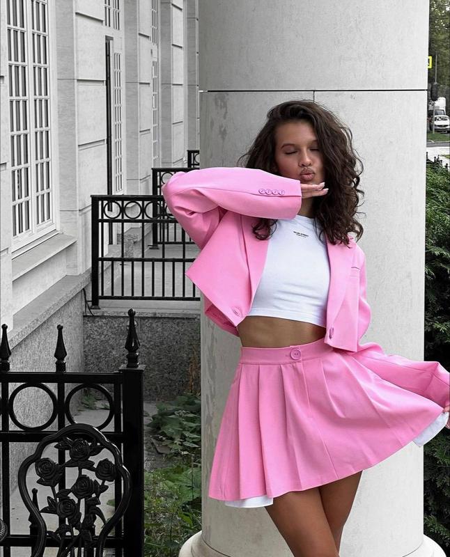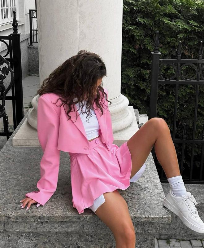 Укороченный oversize пиджак + юбка с трендовой имитацией карманов = идеальное комбо для образов 💔