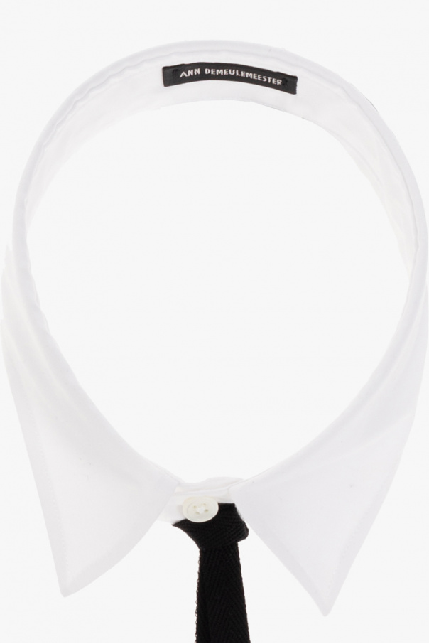 Decorative white collar from Ann Demeulemeester. Made of cotton, this item features a single button closure and decorative tapes with a logo-engraved silver-tone application.