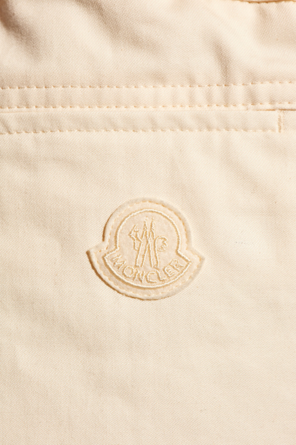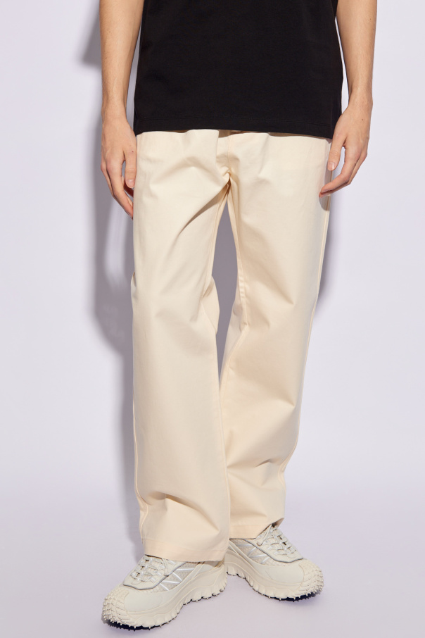 Cream ‘Sportivo’ trousers from Moncler. Made from cotton, this pair falls with slightly tapered legs and features an elasticated waistband accompanied by a hidden zip fly, three slip pockets and a logo patch on the back.