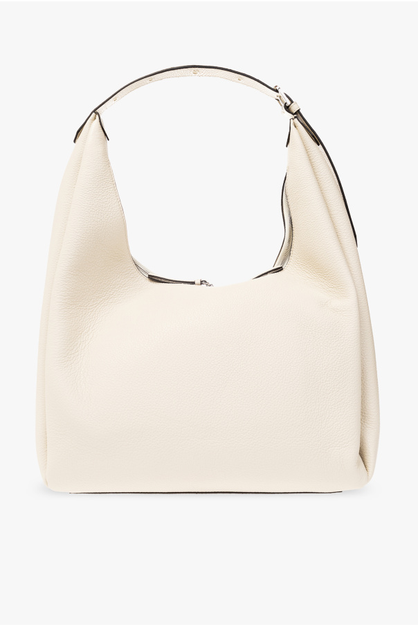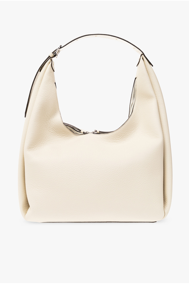 Cream ‘Belt’ shoulder bag from Toteme. Crafted from grained leather, this design secures with a two-way zipper and features an adjustable shoulder strap accentuated with a metal logo plaque, silver-tone metal hardware and one internal compartment with three slip pockets.