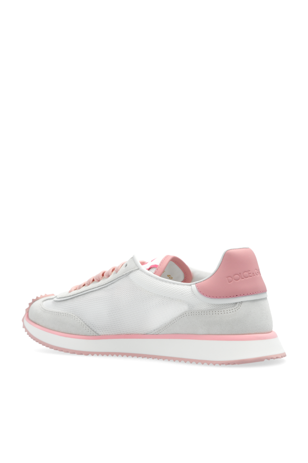 Introducing the exclusive DG Cushion low-top sneakers from the illustrious house of Dolce & Gabbana. These luxurious sneakers are a harmonious blend of sophistication and contemporary design, embodying the essence of modern elegance. Crafted with an exquisite combination of leather and fabric, the low-profile silhouette ensures both breathability and a lightweight feel, perfect for the discerning fashion aficionado. The dominant pink hue, complemented by pristine white accents, creates a visually striking aesthetic that captures attention effortlessly. Adorned with the iconic DG logo on the side and the illustrious Dolce & Gabbana name on the tongue and heel, these sneakers are a testament to impeccable branding. The pink and white rubber sole adds a distinctive touch, providing both style and comfort. Why Choose This Product? Exclusive design by renowned designers Domenico Dolce and Stefano Gabbana Premium materials: a blend of leather and fabric for exceptional comfort and durability Iconic branding with prominent DG logos and Dolce & Gabbana inscriptions Stylish, low-top profile suitable for various occasions Breathable and lightweight construction for ultimate wearability