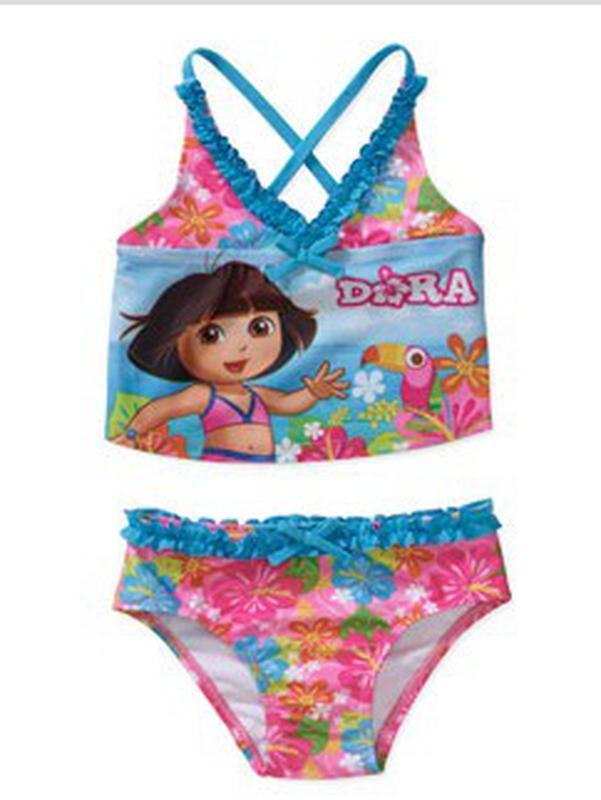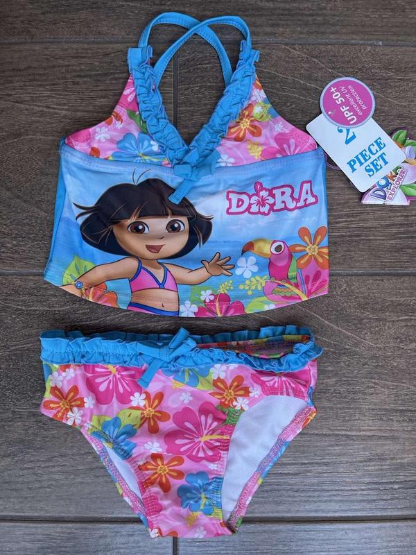 Качественный яркий слитный купальник с рюшами на бретелях для девочки от известного американского бренда Nickelodeon (США). Купальник имеет красивый принт известного мультфильма Дора.