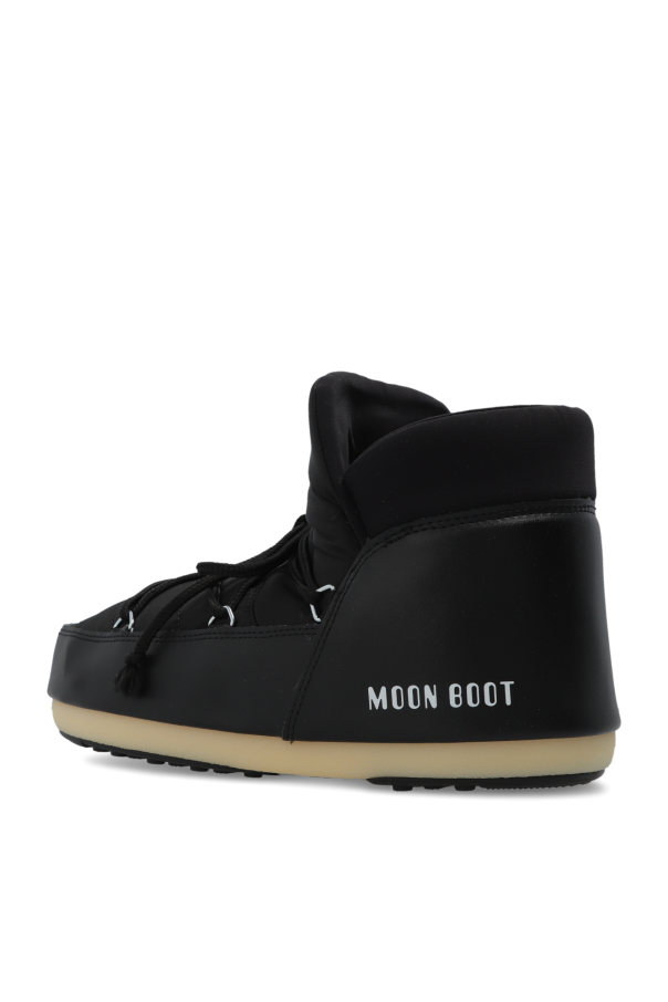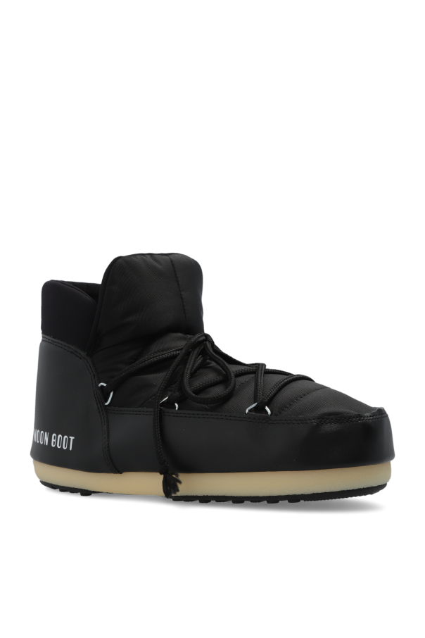 Black ‘Pumps Nylon’ waterproof snow boots from Moon Boot. Printed with a white logo, this model sits on a black and cream tread rubber sole with suction cups to ensure superb grip on any surface and showcases a lace-up front and silver-tone metal hardware. Inspired by the peculiar shape and technology of the astronauts’ boots, the iconic style was designed in 1969 after the first Moon landing.