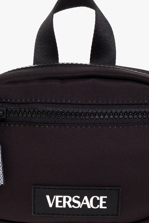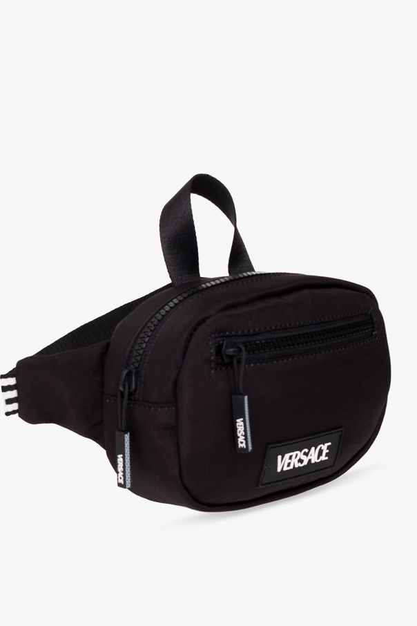 Black belt bag from Versace Kids. This item features a zip fastening, front zip pocket, the brand’s signature Greca Kids motif, half-round handle and adjustable strap.