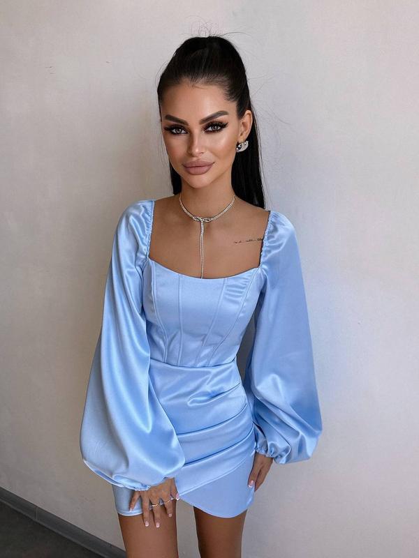 Атласный комплект: корсет + юбка с драпировкой