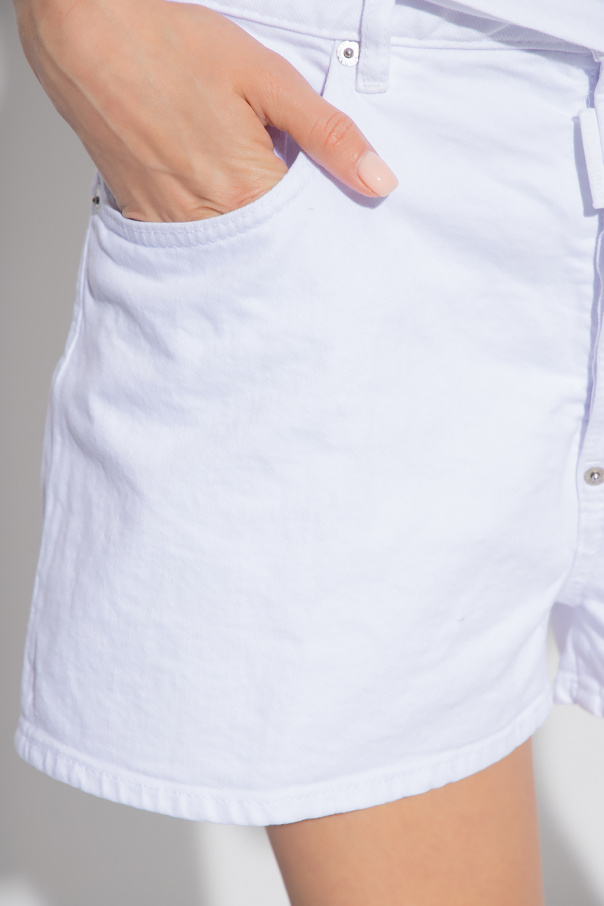 White denim shorts from Dsquared2. Crafted with a relaxed fit, this pair features button fastenings, classic five pockets and logo patches on the front and back.