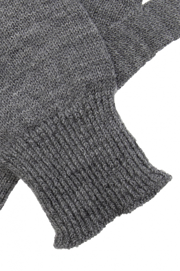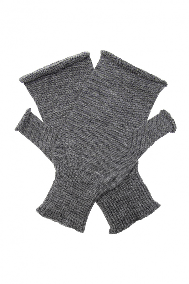 Grey fingerless gloves from Maison Margiela. Crafted from wool, this pair showcases the brand\'s logo.