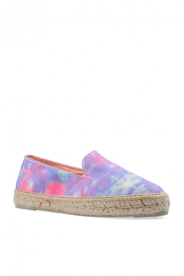 Multicoloured espadrilles from Manebi. Crafted from tie-dyed cotton, this model features an embroidered logo and a natural jute sole with a thin rubber layer in grey.