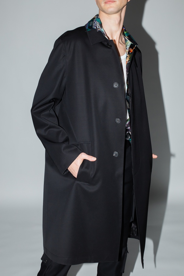 Black coat from Givenchy. Crafted from wool, this item fastens via buttons with a concealed placket and features two welt pockets on the front and a single vent on the back.