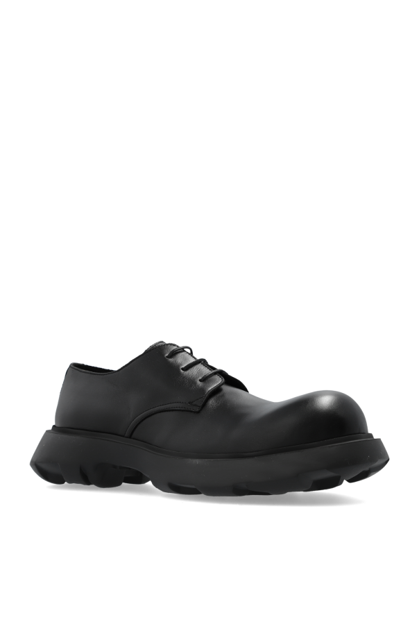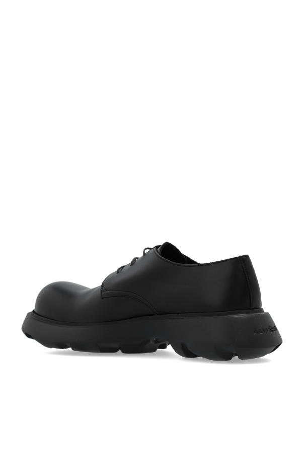 Introducing the epitome of sophisticated footwear: the Black Leather Lace-Up Shoes by Acne Studios. Crafted with meticulous attention to detail, these shoes are a testament to the timeless elegance and exceptional quality that Acne Studios is renowned for. The outer and inner layers are fashioned from premium leather, boasting a smooth texture that exudes luxury. The almond-shaped toe adds a decorative touch, enhancing the classic, sleek silhouette. The design is complemented by a sturdy, black rubber sole, ensuring not only a firm grip but also unmatched comfort for the wearer. The subtle, embossed logo at the back of the shoe aligns with the contemporary trend of understated branding, favored by exclusive designer labels. Its versatile black hue guarantees seamless integration into both formal and casual ensembles, making it an indispensable addition to your wardrobe. Why Purchase This Product? Constructed from high-quality leather, promising durability and a refined appearance. Features a solid rubber sole for excellent traction and all-day comfort. Almond-shaped toe and discreet logo detail offer a unique touch of designer elegance. Ideal for versatile styling, effortlessly complementing formal attire or casual outfits.