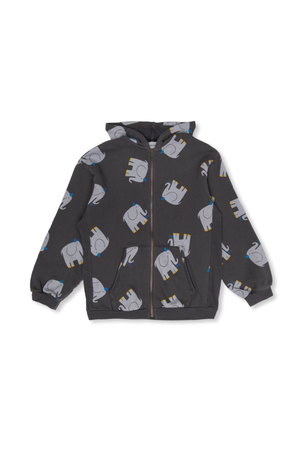Dark grey hoodie from Bobo Choses. Made of organic cotton. Fastened with a zip, this design features an animal pattern, two slip pockets and ribbed trims at the hem and cuffs.