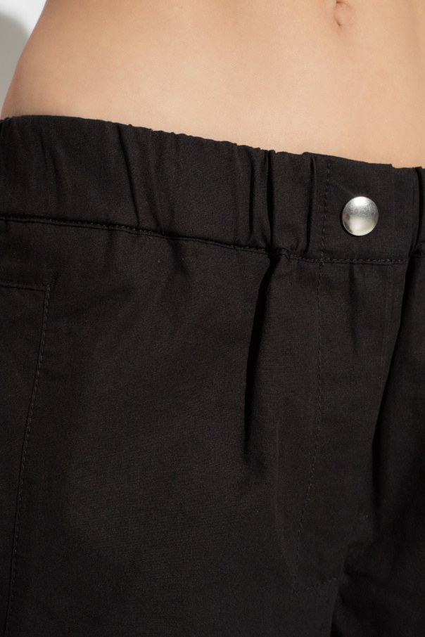Black trousers from Proenza Schouler White Label. Crafted from a cotton and linen blend, this pair falls with straight legs and features a zip fly with snaps, an elasticated waistband and three slip pockets.