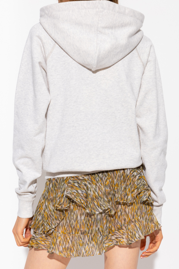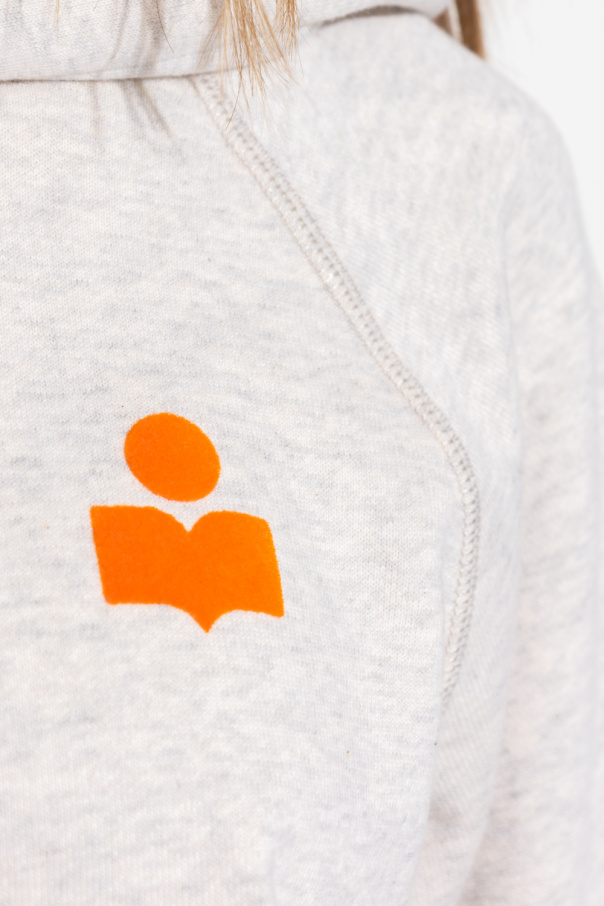 Cream ‘Malibu’ sweatshirt with a drawcord-adjustable hood from Isabel Marant Etoile. Crafted in part from organic cotton, this style features an orange velvet-flocked logo print across the front, a kangaroo pocket and an elasticated bottom hem and cuffs.