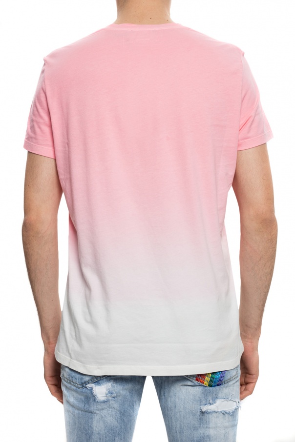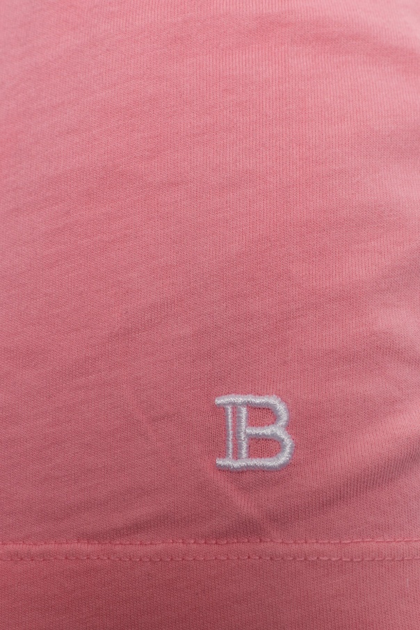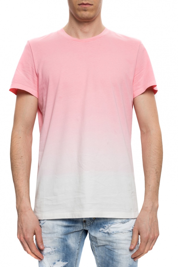Pink and white crewneck cotton T-shirt from Balmain.