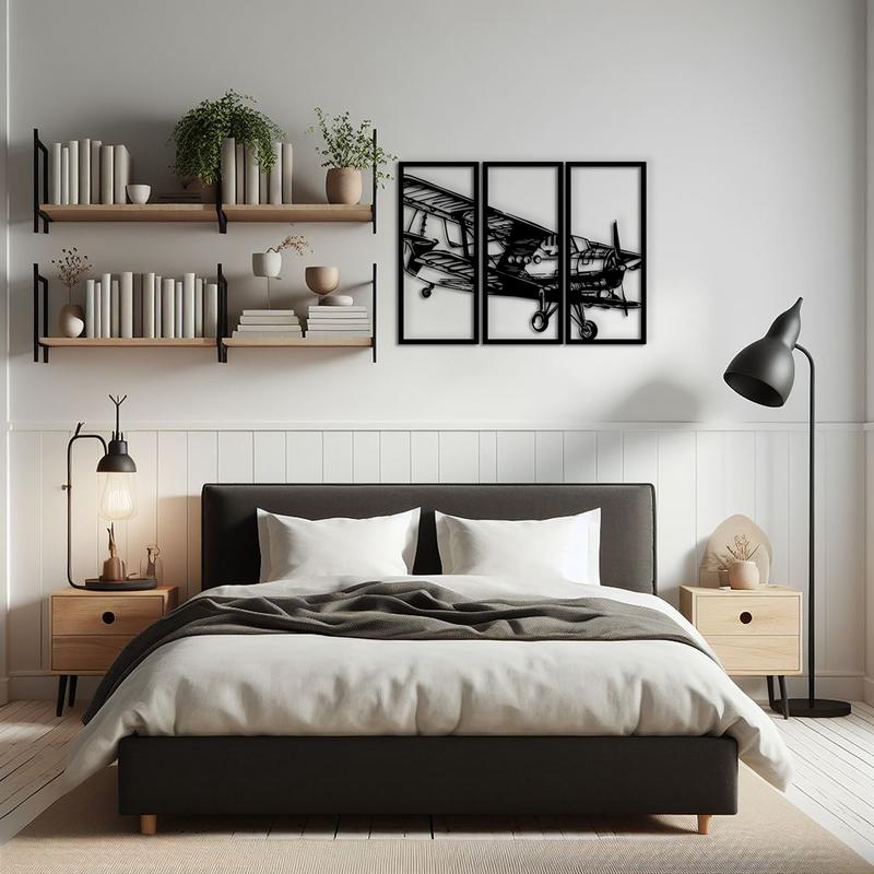 Декоративное панно из дерева, интерьерная картина на стену "Первый самолет"