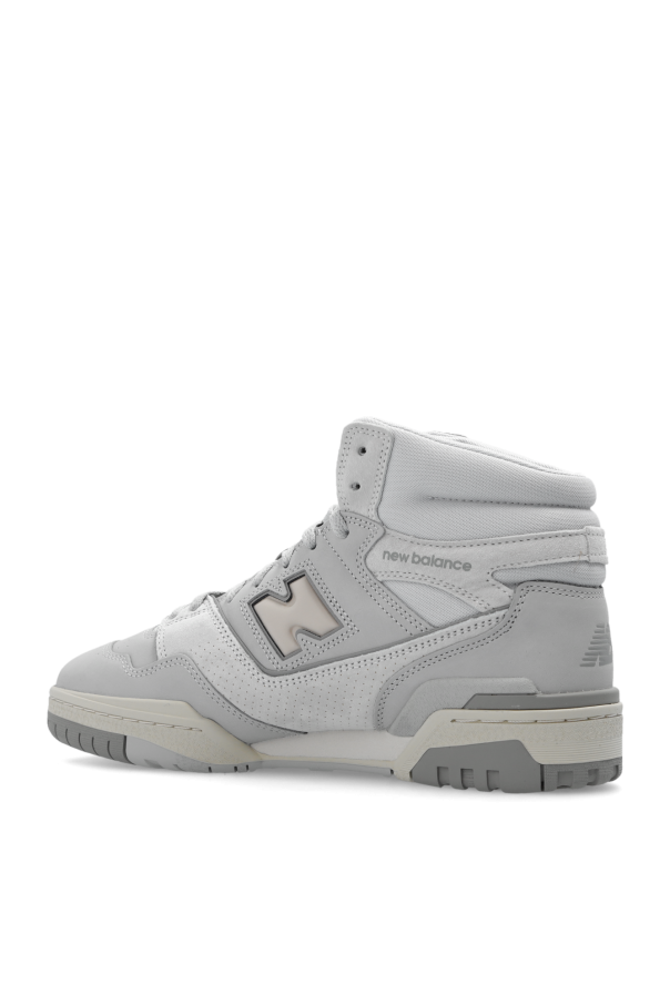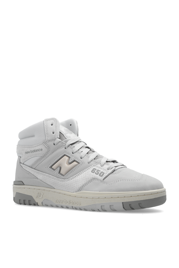 Grey ‘BB650RGG’ sneakers from New Balance. Crafted from leather and fabric with a high-top silhouette, this lace-up model sits on a grey rubber sole and showcases a logo application and perforated leather accents.