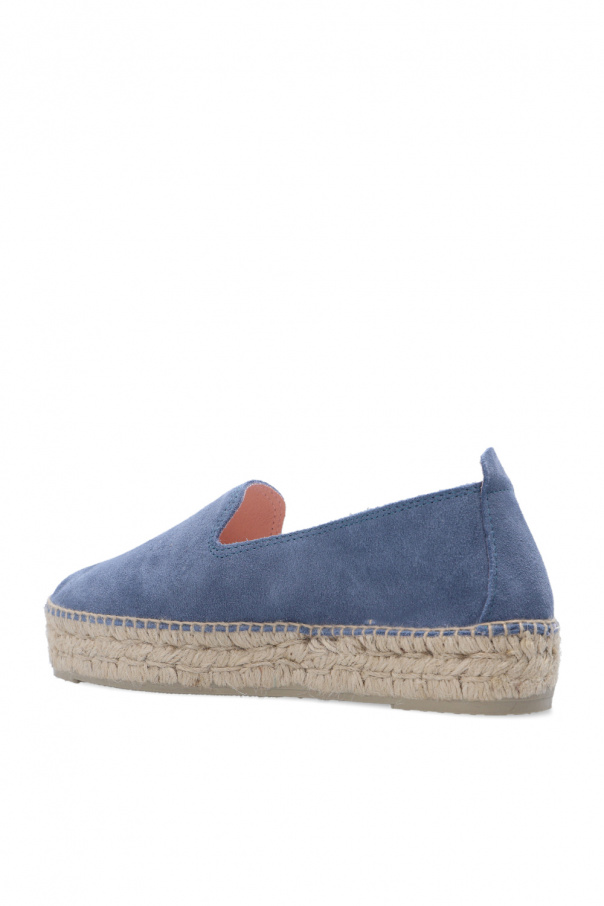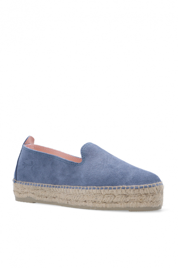 Blue ‘Hamptons’ espadrilles from Manebi. Made of suede, this model features an embossed logo on the side and a natural jute sole with a thin rubber layer in grey.